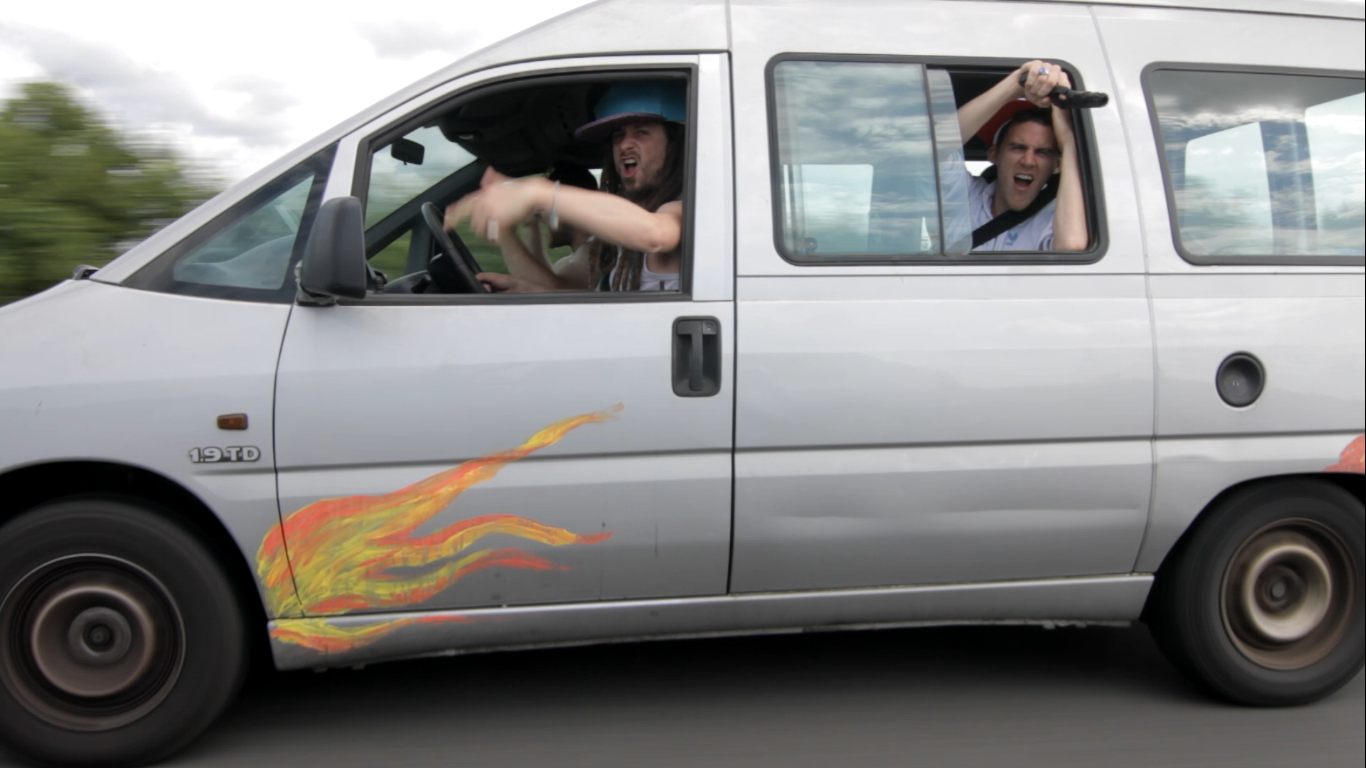Literaly “shooting” the Cool Cavemen video.